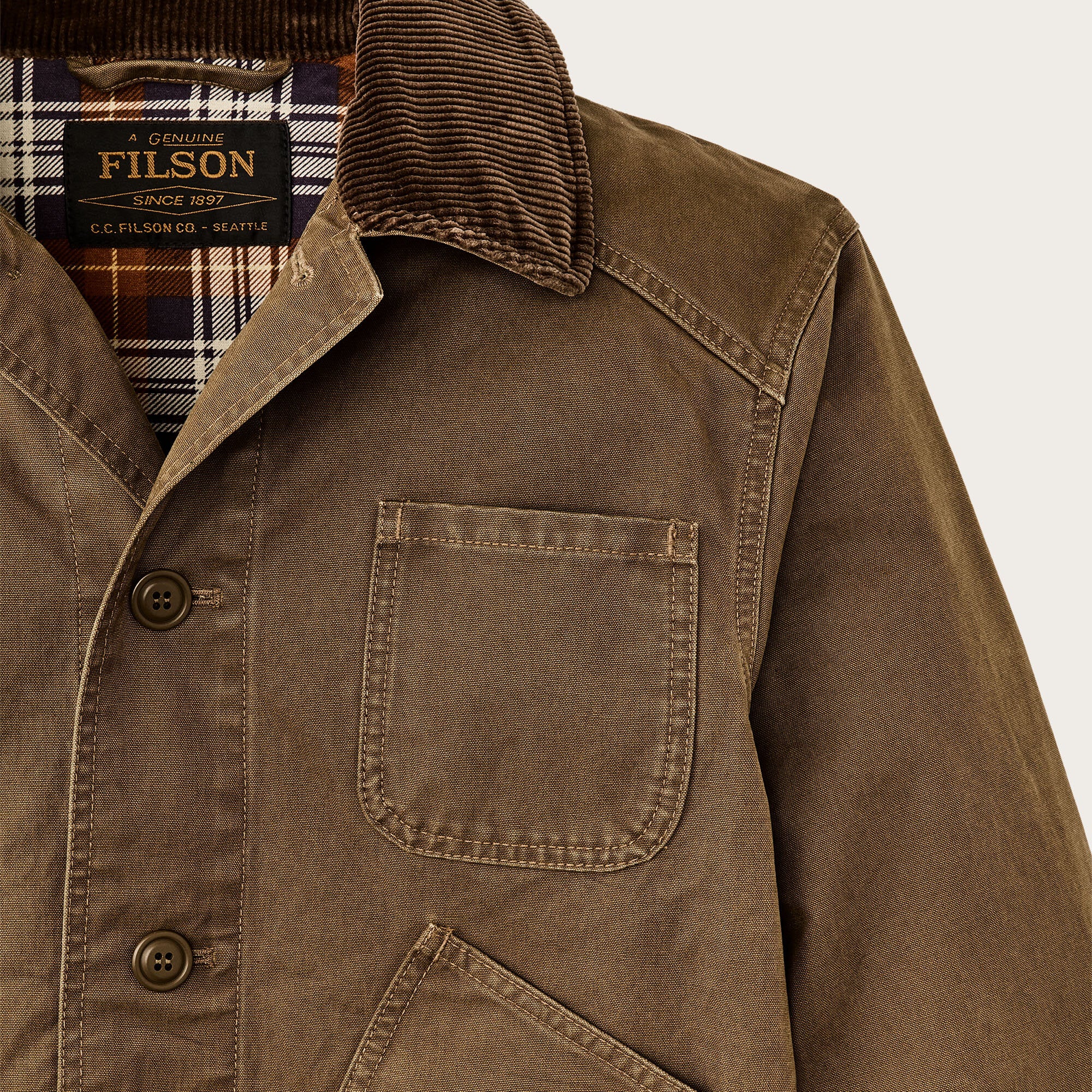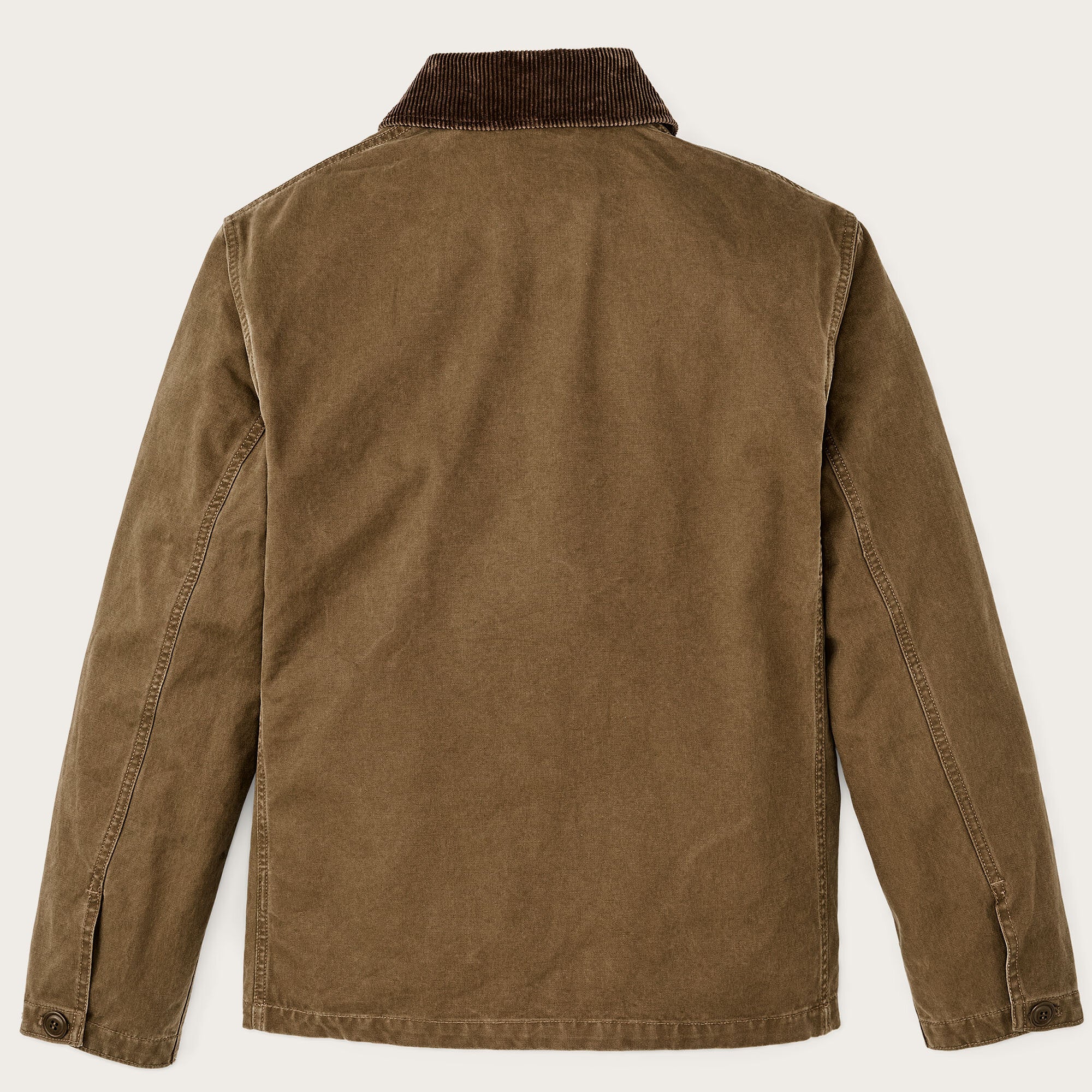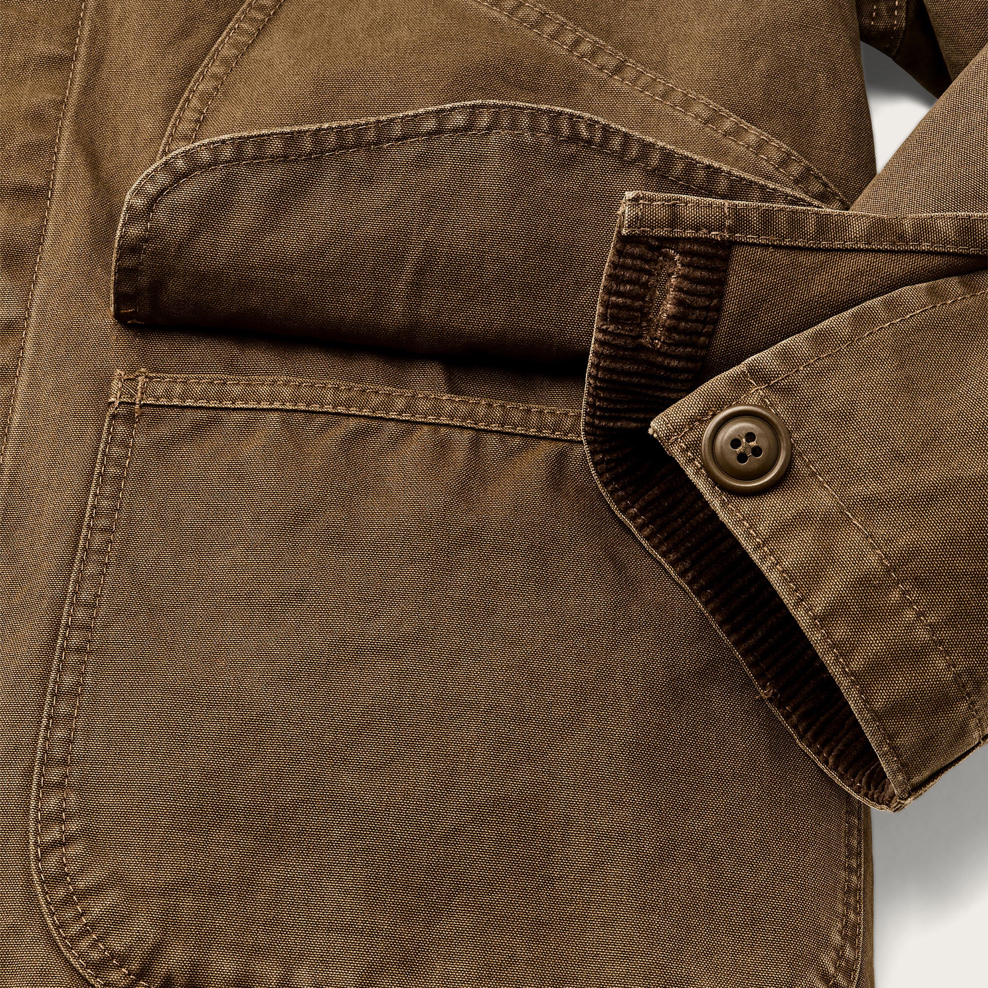 Our Canvas Outfitter Jacket is a straightforward barrier against brush, thorns, and flying wood chips. The sturdy 10.5-oz. canvas is tightly woven for excellent tear strength and wind resistance. Strong, chip-resistant buttons secure the front closure and adjustable cuffs. The hand pockets double as flaps for the cargo pockets, a design taken from our vintage field coats. Corduroy-lined collar.