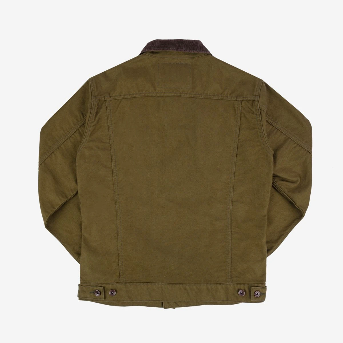 Our modified take on the classic Type III trucker jacket – offering a slightly longer than traditional body, with the addition of side handwarmer pockets – constructed from our 12oz whipcord. Often utilised in military wear, the tightly woven cotton twill of whipcord is renowned for its hardwearing properties, offering excellent scratch and wind resistance. Lightweight and durable, this version features the addition of a corduroy-lined collar, cuffs and pockets for added comfort.Â