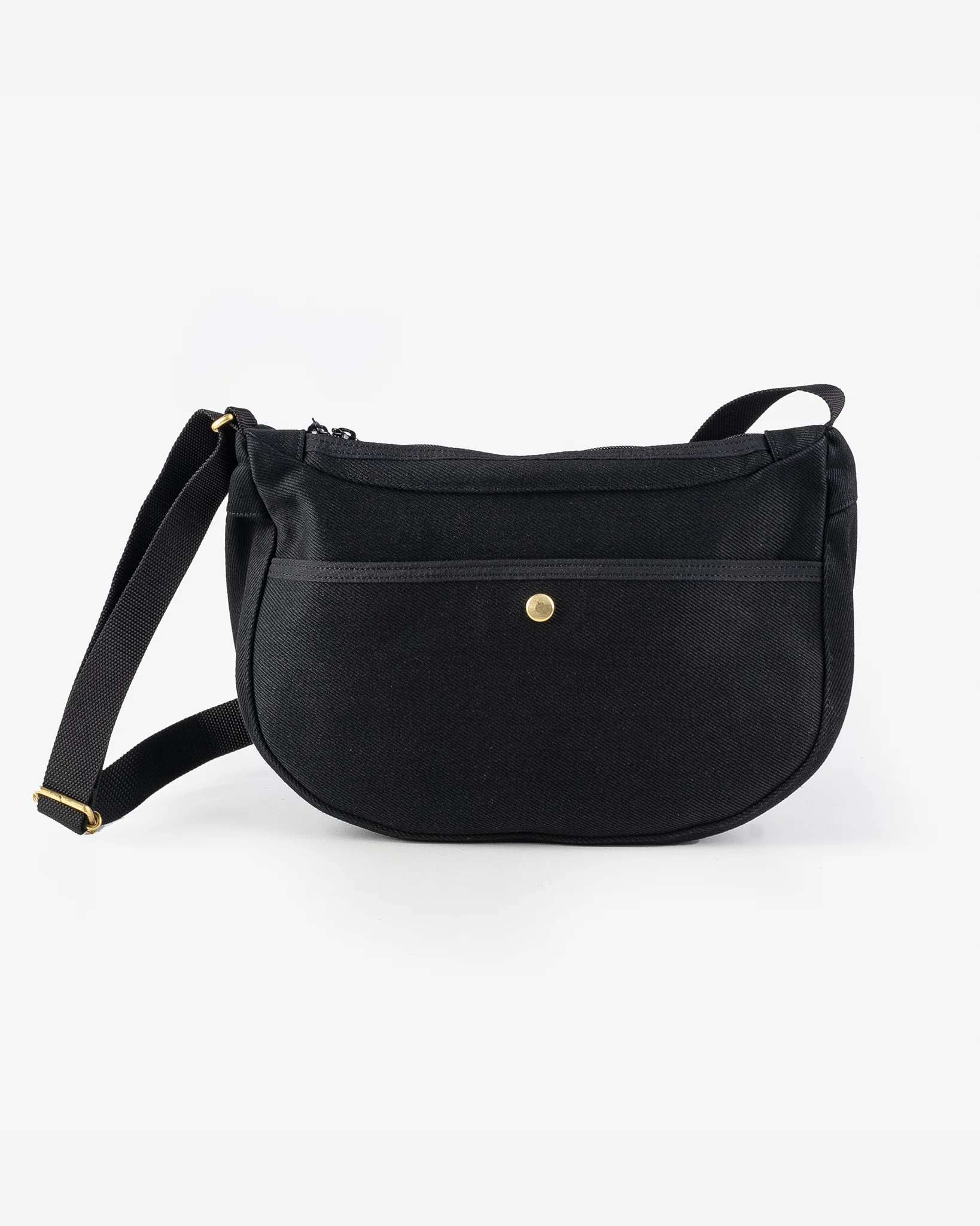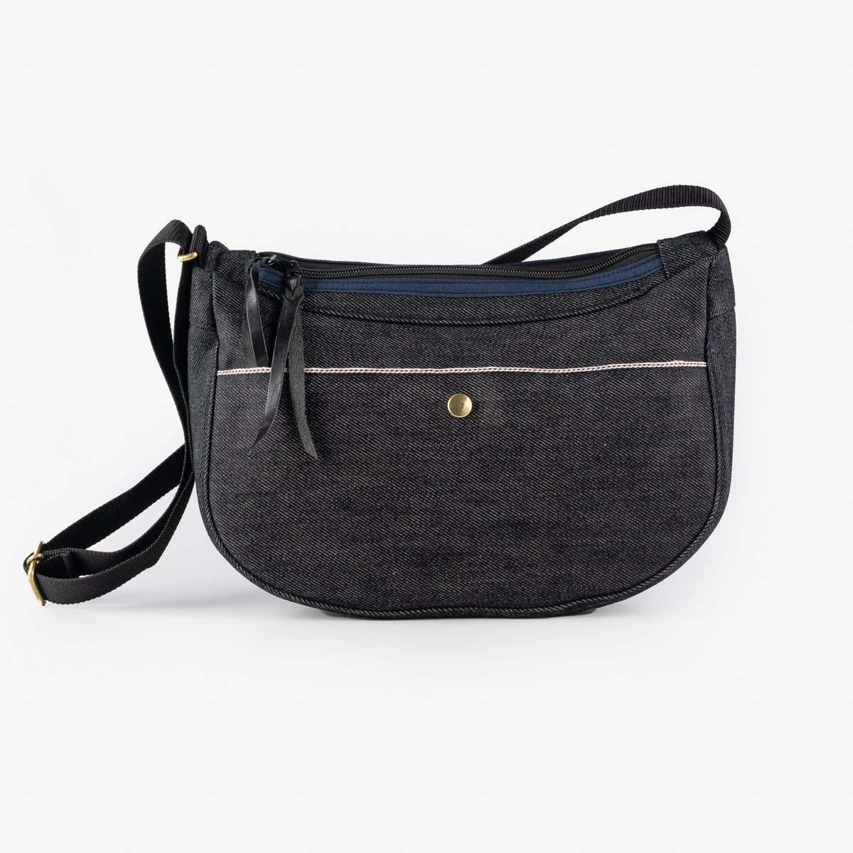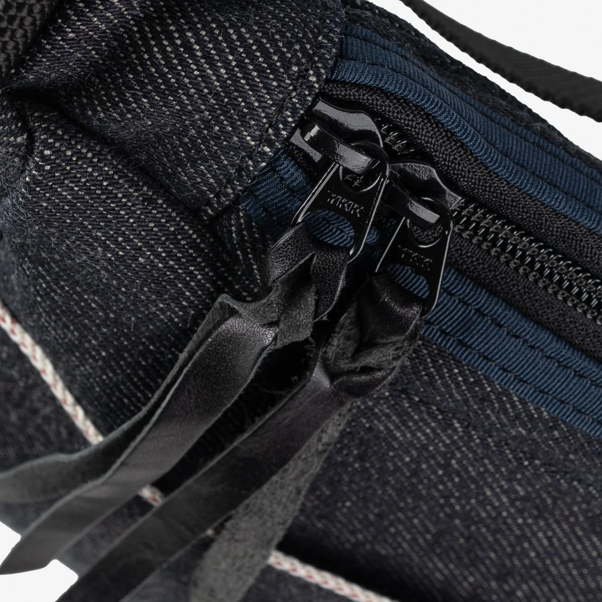 Constructed from 21oz selvedge denim, this is a hardwearing, versatile shoulder bag which offers generous storage capacity considering its smaller size. Multiple storage pockets include a main compartment (easily large enough to fit a 1-litre water bottle, with plenty of room to spare) and a smaller internal pouch for hidden storage of a passport or wallet. Other features include a 1” nylon shoulder strap, YKK zippers, leather zip pulls and brass hardware – an ideal carry bag for your everyday essentials and valuables.