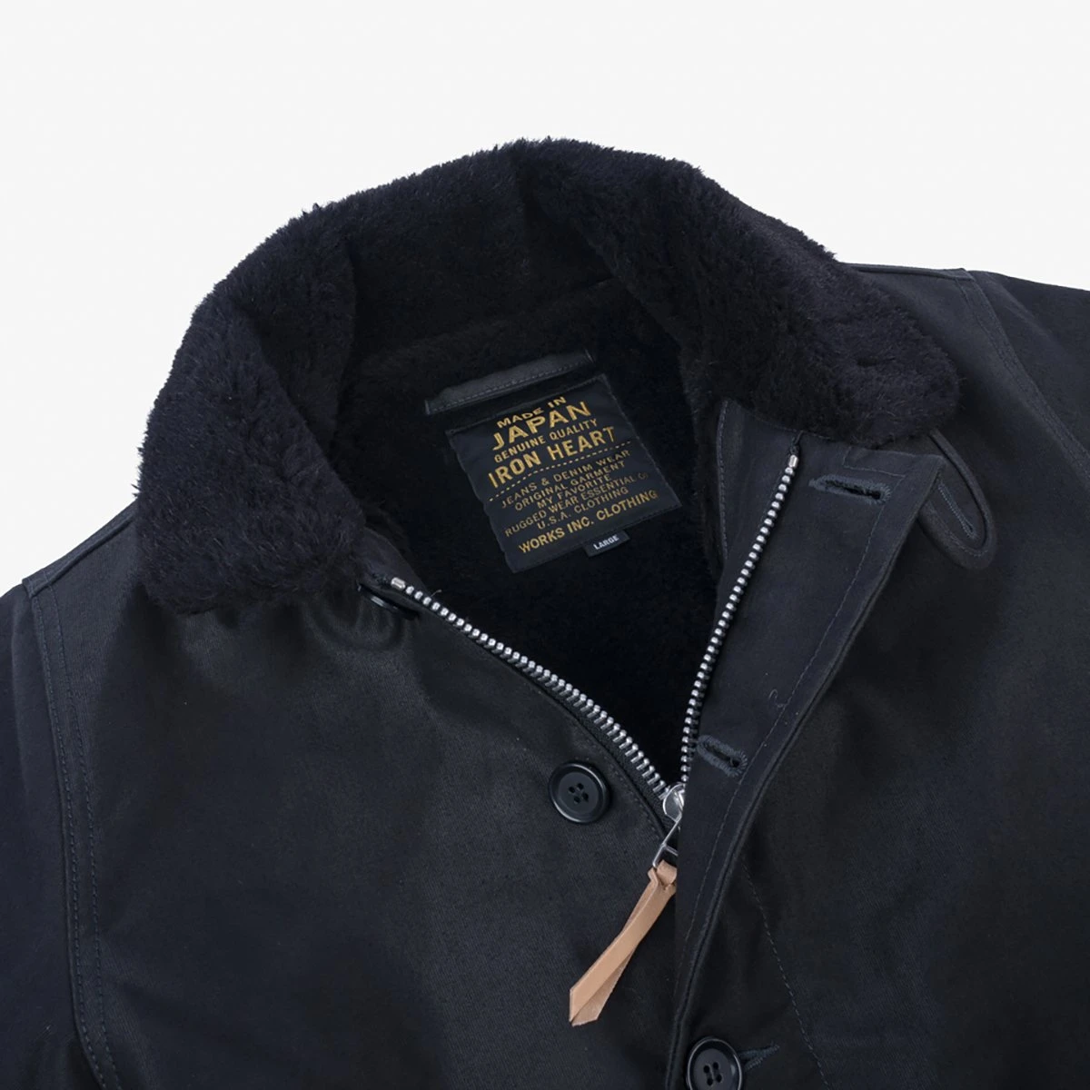 The classic N1 deck jacket was first produced for the US Navy in the early 1940s. Much copied since then, it has become a true style icon in its own right. The Iron Heart version remains pretty true to the original jackets on the basis that “if it ain’t broke, don’t fix it”. The one major, but unseen, change we have made is to add an additional interlining to increase wind resistance. A truly warm and great-looking winter jacket.