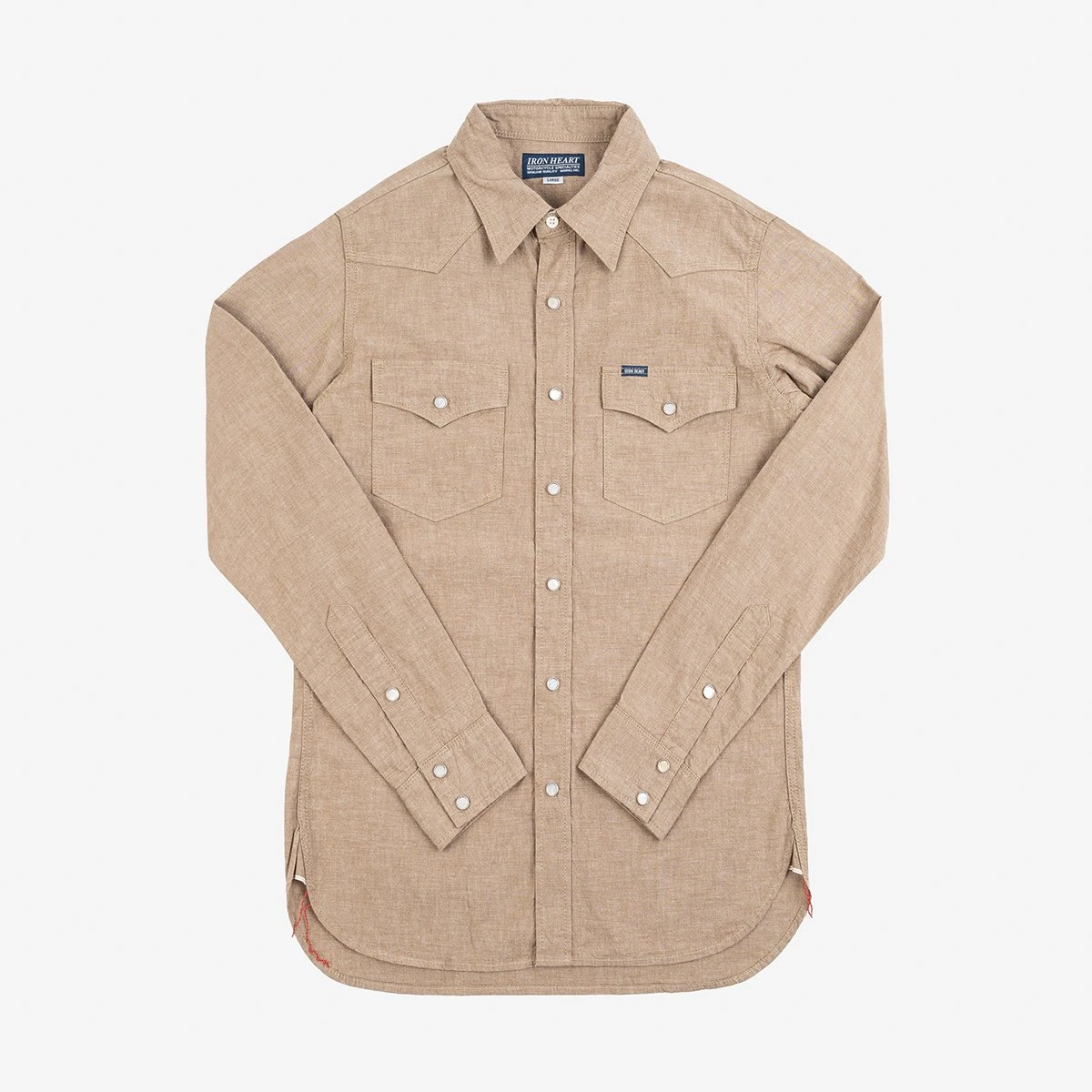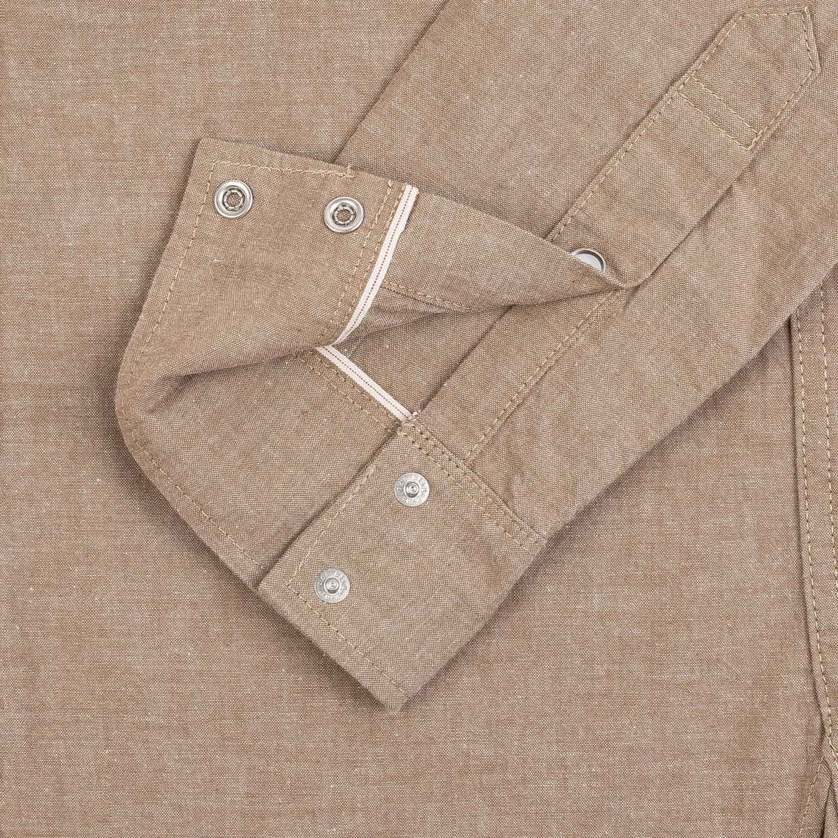 Our classic western shirt design, made in Japan from a traditional selvedge chambray. Finished with mother of pearl snaps and triple needle stitch construction throughout.