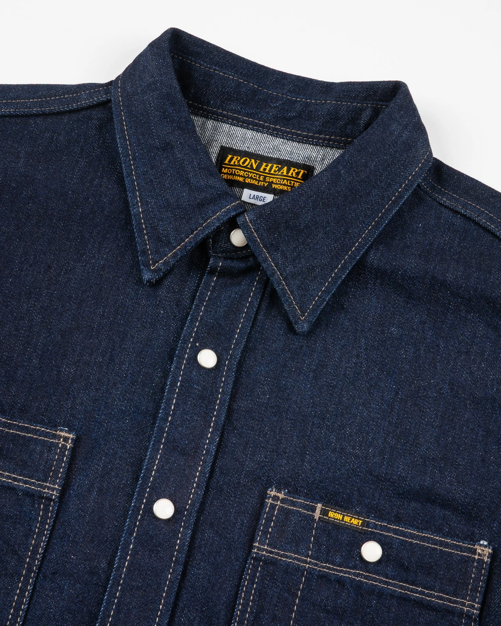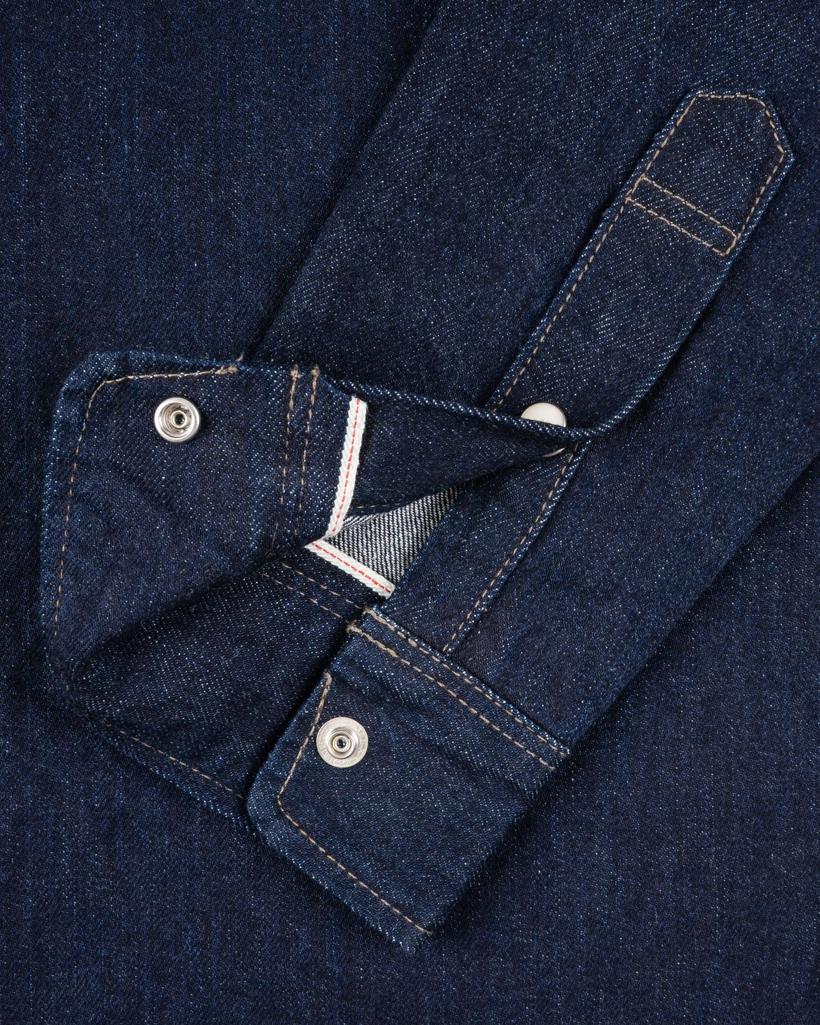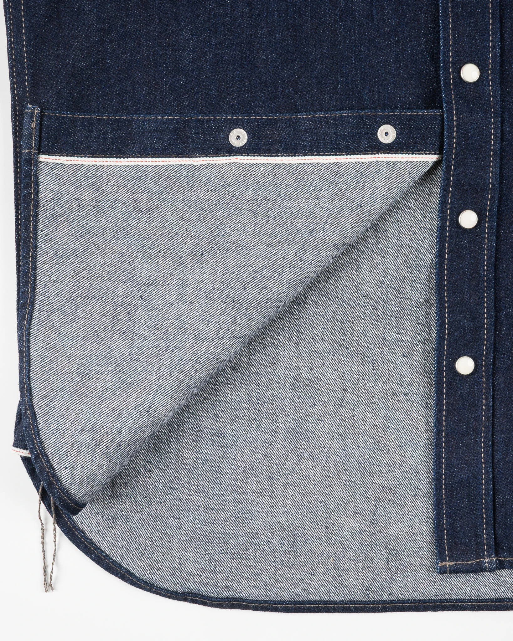 One of our longest running and most popular work shirts made from a 12oz indigo selvedge denim, but this time finished with snaps, not buttons. Great fade potential if you put the work in.