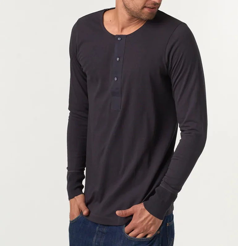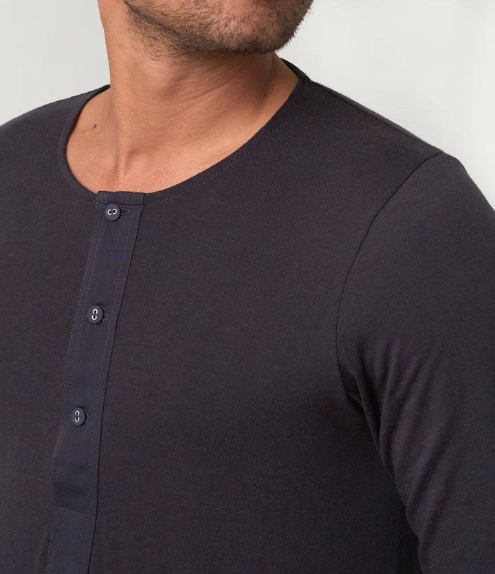 Merz b.Schwanen 102 Loopwheeled Maco-Imit Long Sleeve Henley