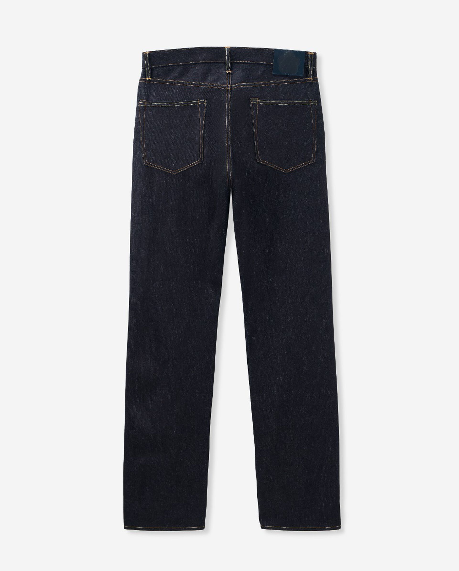 #100 is a straight-fit model with an orthodox thickness. Crafted with a base featuring moderately thick thighs, this refined basic silhouette is enhanced with a gentle tapering below the knees. The slightly deeper rise ensures a snug and secures fit around the waist offering comfort.