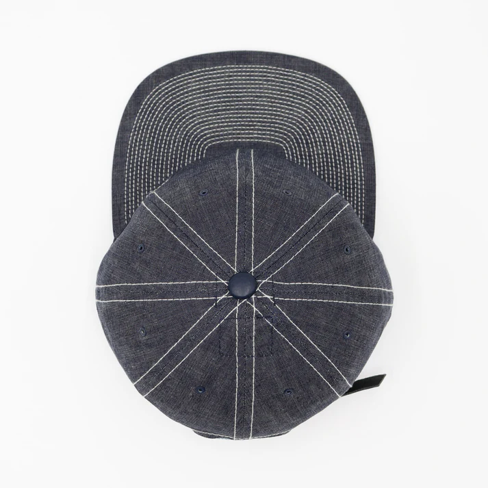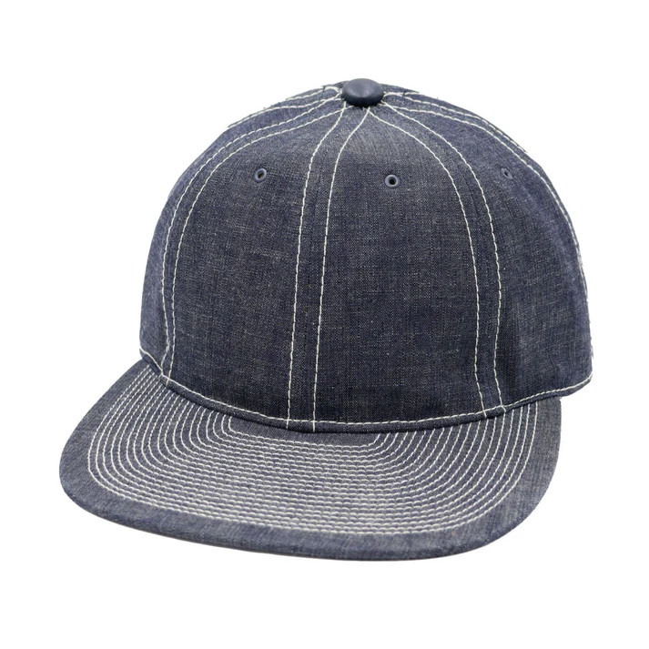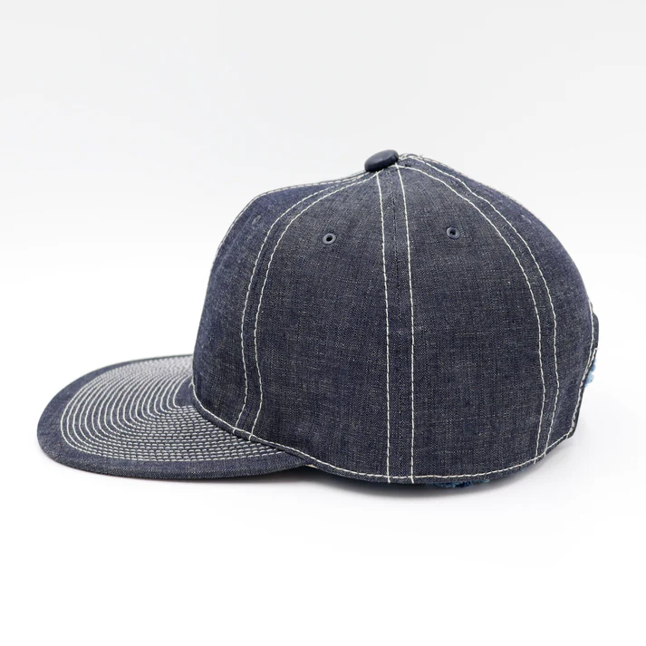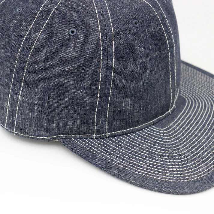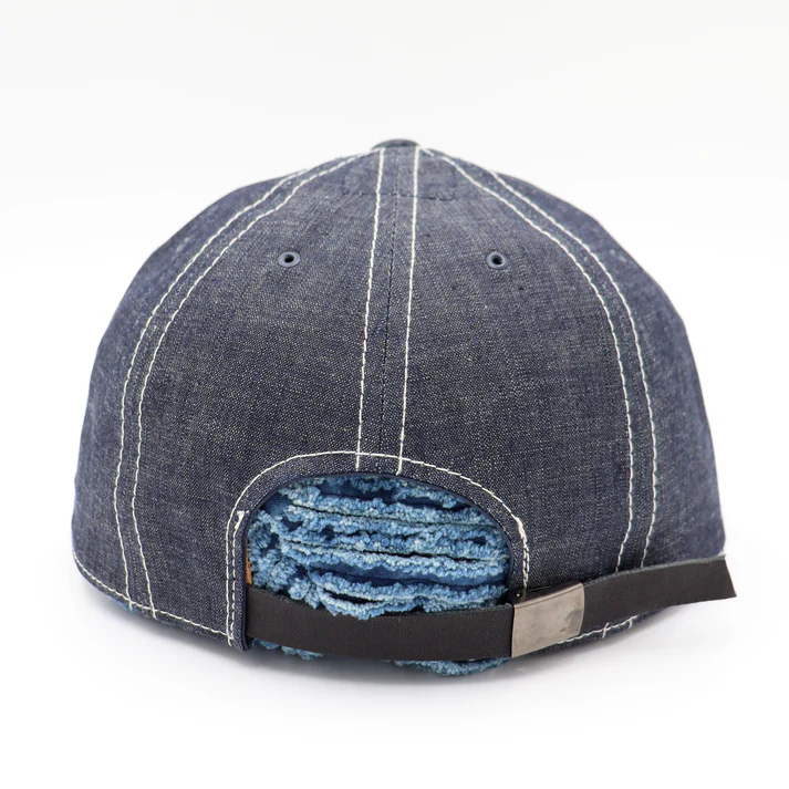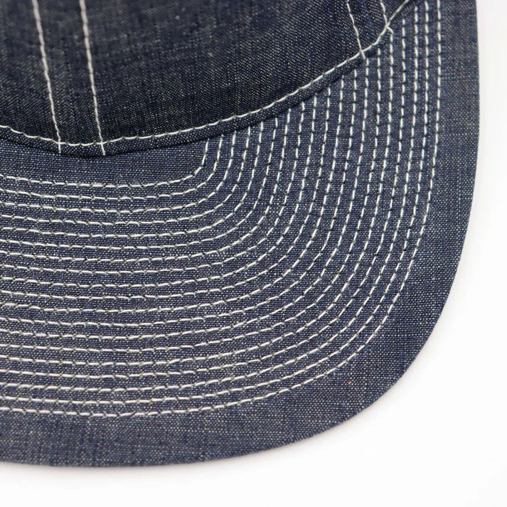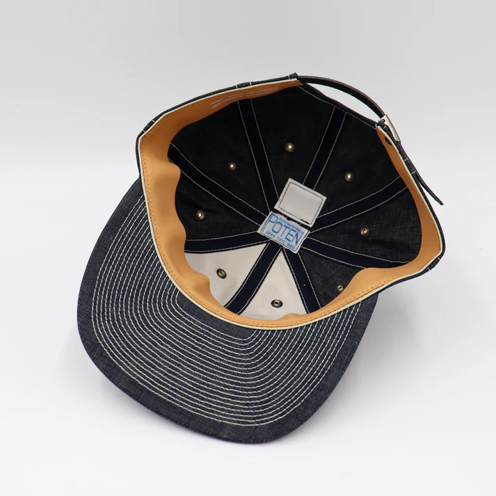 POTEN ‘s standard model. 8- panel sweatband made of cowhide. It is made of 8 ounce fabric that reproduces the fabric of vintage chambray shirts. The top buttons are made of cowhide leather for a luxurious look. The stitching is also white to resemble a chambray shirt.