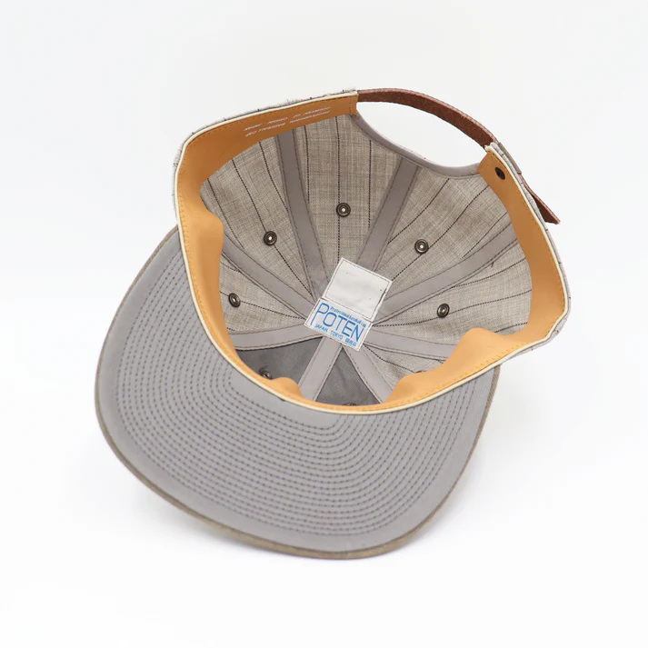 POTEN’s traditional style. Standard 8-panel sweatband made of cowhide. This cap combines 100% wool pinstripe fabric, which is also used in high-end suits, with cotton fabric dyed with a special process.