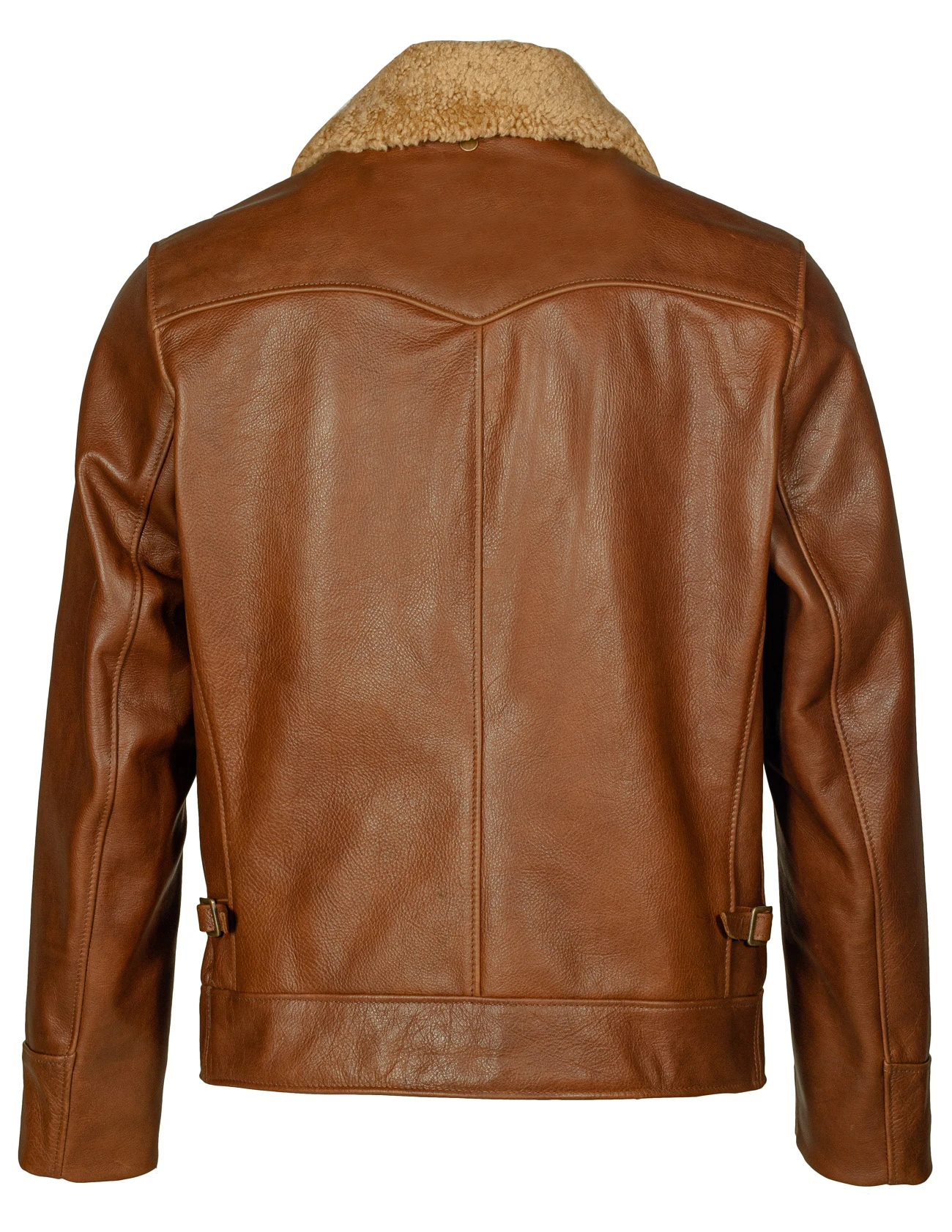 Men’s waxy antique cowhide rancher jacket with detachable curly sheepskin collar, by Schott. This classic body features a real sheepskin collar, and an upper back yoke for style and movement.