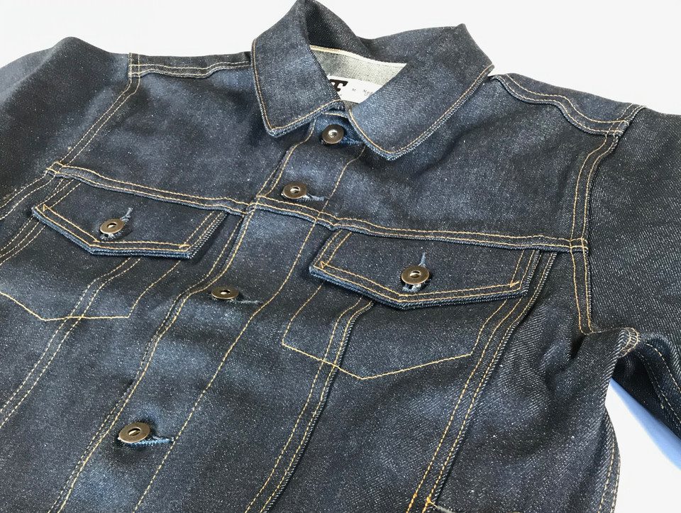Jean Jacket made from our 16.5 oz proprietary Kaihara Japanese raw selvage denim (sanforized). Two exterior side pockets, two chest pockets and two interior pockets.  Made in San Francisco, Calif. USA